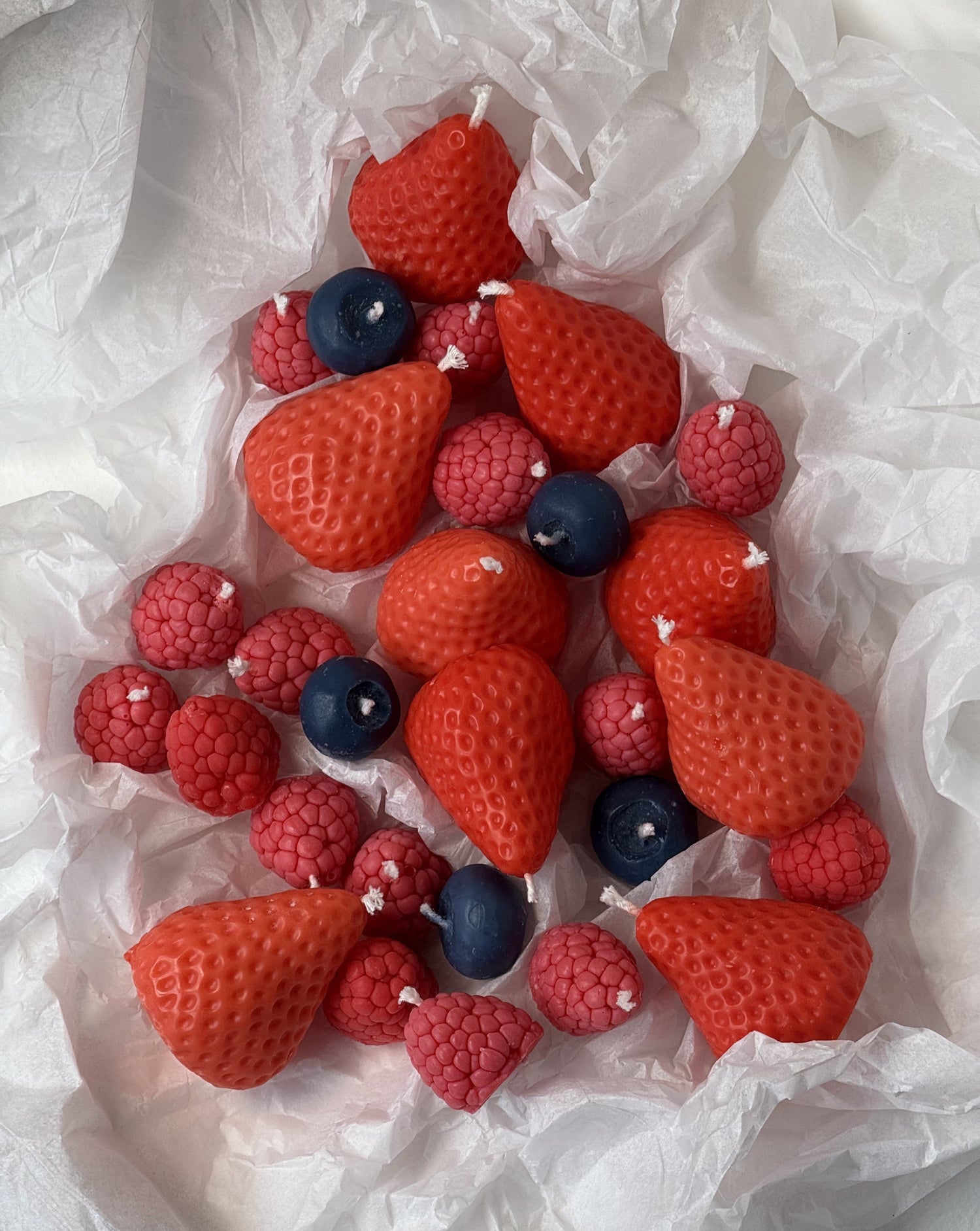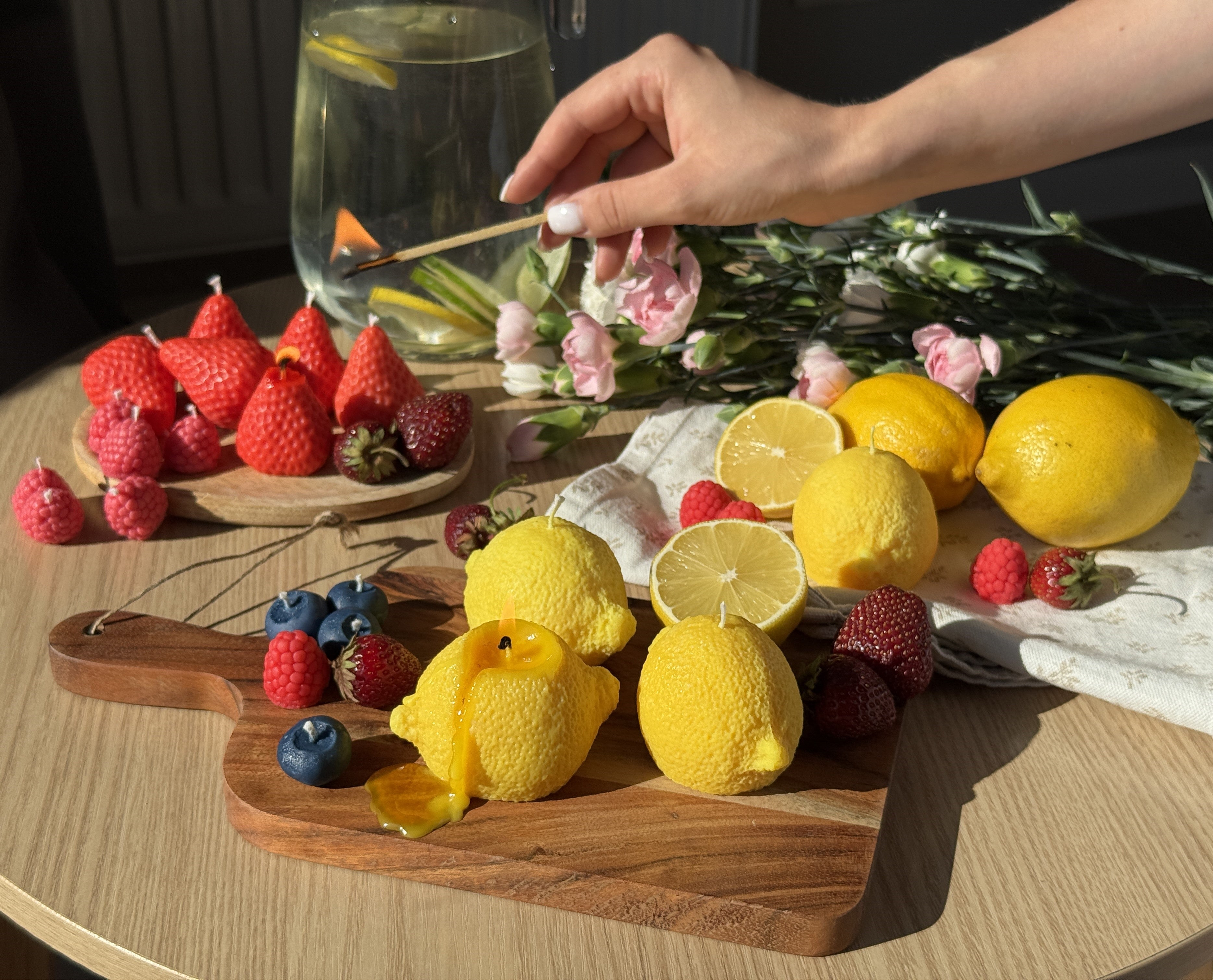 Sonnig, verspielt und voller Farbe – unsere Sommerkerzen in Fruchtform bringen dir das Gefühl von warmen Tagen, frischen Beeren und guter Laune direkt nach Hause.